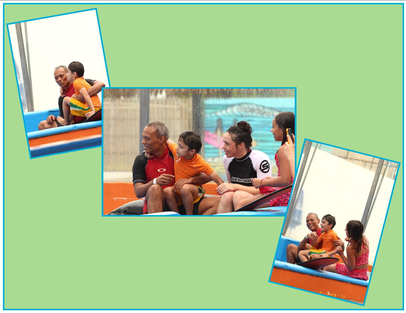 After a lesson, we got going, each taking turns on the Flow Rider. We got the hang of flowboarding in the belly-down position, which was a great achievement and good fun! Kneeling on the flowboard was totally exhilarating but significantly more challenging to stay on. Standing (only the adults were permitted to try this) was a complete fearfest. We gripped a rope while standing on a narrow flowboard, about the size of a snowboard. Alaric and I were each able to maintain our positions for about a dozen seconds, before falling spectacularly, and having the wave wash us uphill, desperately grasping the waistband of our not-snug-enough bottoms.