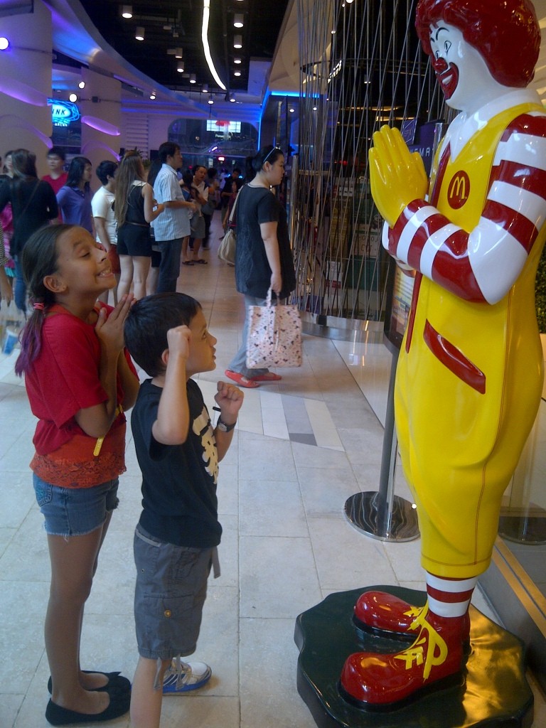 Have you ever tried flowboarding? Do you know what flowboarding is? We discovered recently that it’s the only way to “surf” in the middle of a big city. A thin layer of fast-flowing water is pumped uphill, to emulate the shape and feel of a wave. This simulated wave is the Flow Rider. The surface of the “hill” is not unlike a gymnastics tumble track, so it hurts less when you fall. And we four fell all the time.